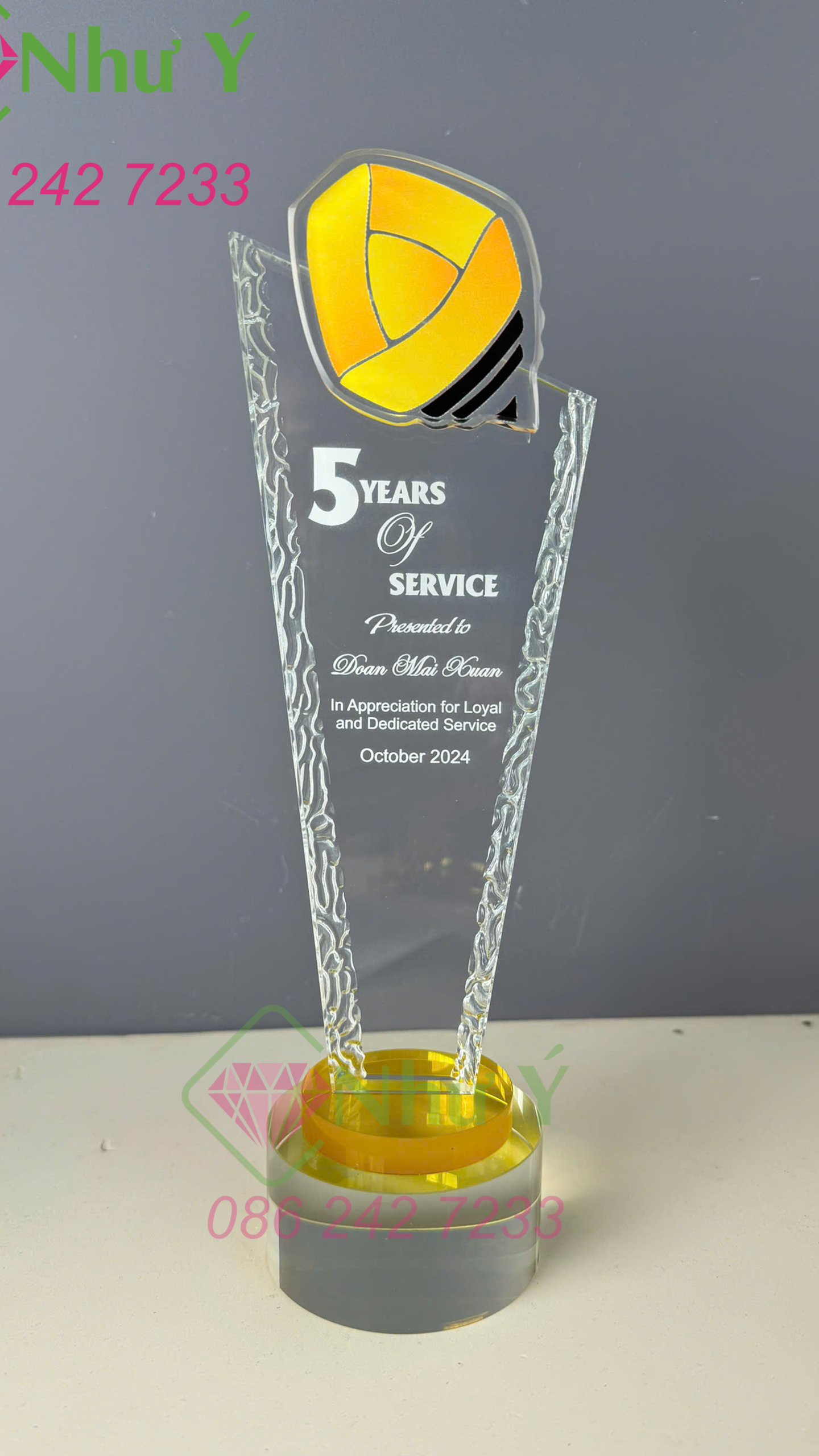 Biểu trưng pha lê   được thiết kế tinh xảo tạo hình sản phẩm bắt mắt được Pha lê Như Ý phân phối .